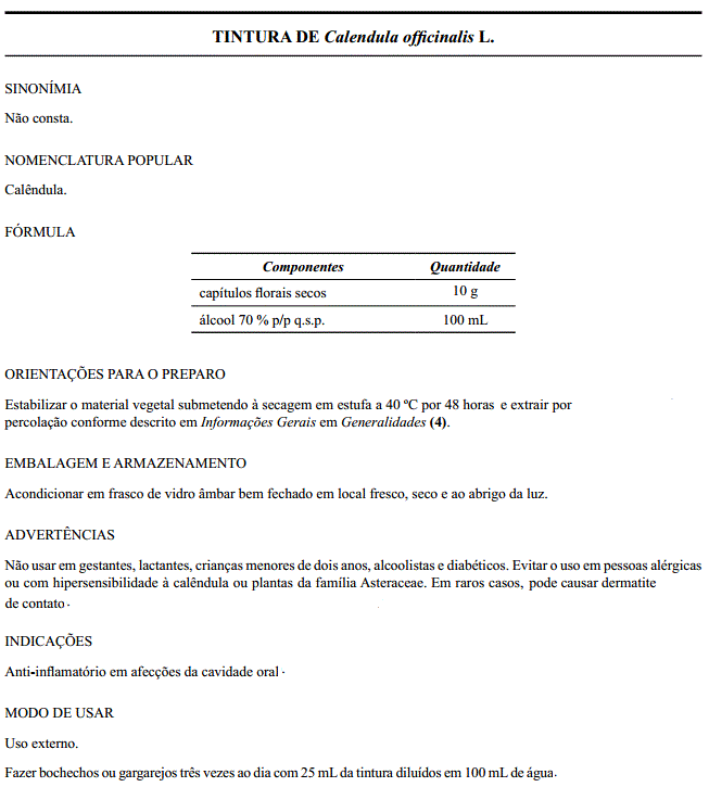 Enviado por Sergio Sigrist em seg, 19/05/2014 - 4:19pm Referência Formulário de Fitoterápicos da Farmacopeia Brasileira, 1ª edição. ANVISA, p. 72. 2011.