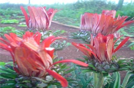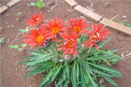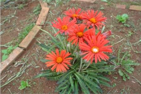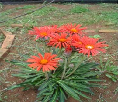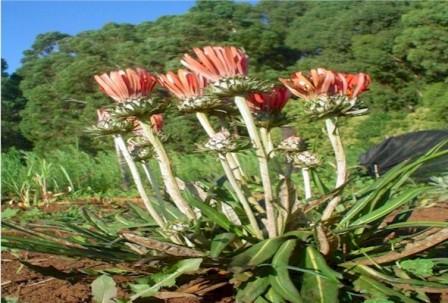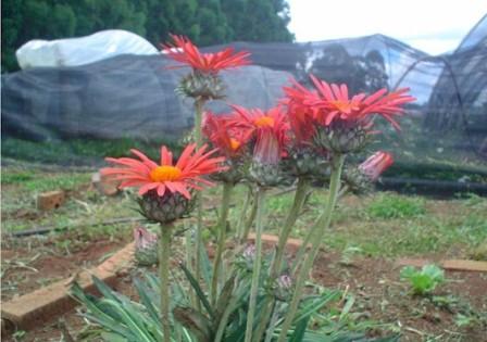 A flor é muito bonita, razão pela qual também é empregada como ornamental. Põe seus enormes capítulos de lígulas vermelhas. Floresce durante os meses de janeiro, fevereiro, março e abril.