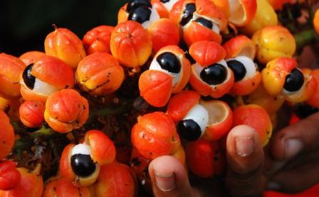O fruto possui grande quantidade de cafeína e devido a propriedade estimulante, é usado na fabricação de xarope, barras, pó e refrigerante. Tem casca vermelha, quando maduro deixa aparecer a polpa branca e suas sementes, assemelhando-se a olhos.