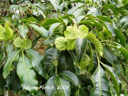 Folhas opostas, compostas trifolioladas, com pecíolo de 4-8 cm. Flores branco-amareladas, dispostas em panículas terminais, aparecem no final de setembro até novembro. Fruto tri e tetralado, paleáceo, não comestível. A maturação ocorre em agosto-setembro.